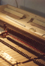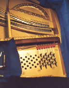 Remplacement des feutres et sous-feutres et pose des étouffoirs dans le piano.